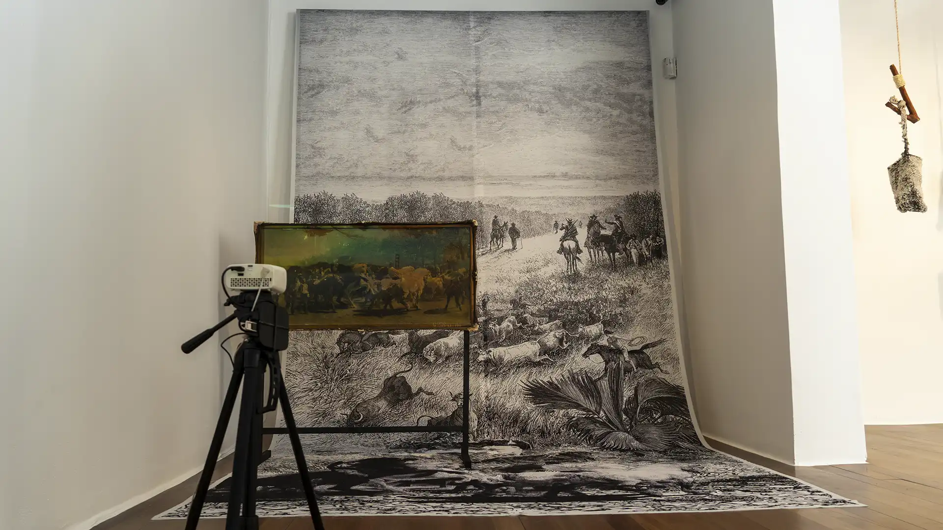 El primer lugar fue otorgado a Lina Paola Henao Gómez (Bogotá) por su obra “Soberanos y dominados”, una videoinstalación que indaga en la construcción simbólica del llano y la tensión entre razón y deseo, civilización y barbarie. La pieza conjuga una impresión textil de gran formato, una reproducción pictórica del siglo XVIII y una videoproyección de texto y voz, componiendo una experiencia visual que surge de las reflexiones de la artista durante su residencia en Arauca. Gracias al apoyo de la Fundación Carolina, Lina Paola realizará una residencia artística en Madrid, que le permitirá ampliar su horizonte creativo e intercambiar experiencias con la escena artística española.