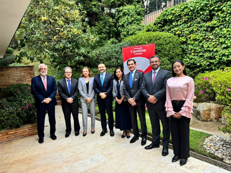 La reunión contó con la destacada presencia de D. Daniel Haime Gutt, presidente de la Fundación Carolina Colombia; el Excmo. Sr. D. Santiago Jiménez, Embajador de España en Colombia; Dª Érika Rodríguez Pinzón, directora de la Fundación Carolina; D. Víctor Hugo Malagón, D. Guillermo Carvajalino y D. Jerónimo Castro Jaramillo. Como invitadas invitadas Carolina Olarte, directora ejecutiva, y Nicole Bautista, asistente de proyectos de la Fundación Carolina Colombia.