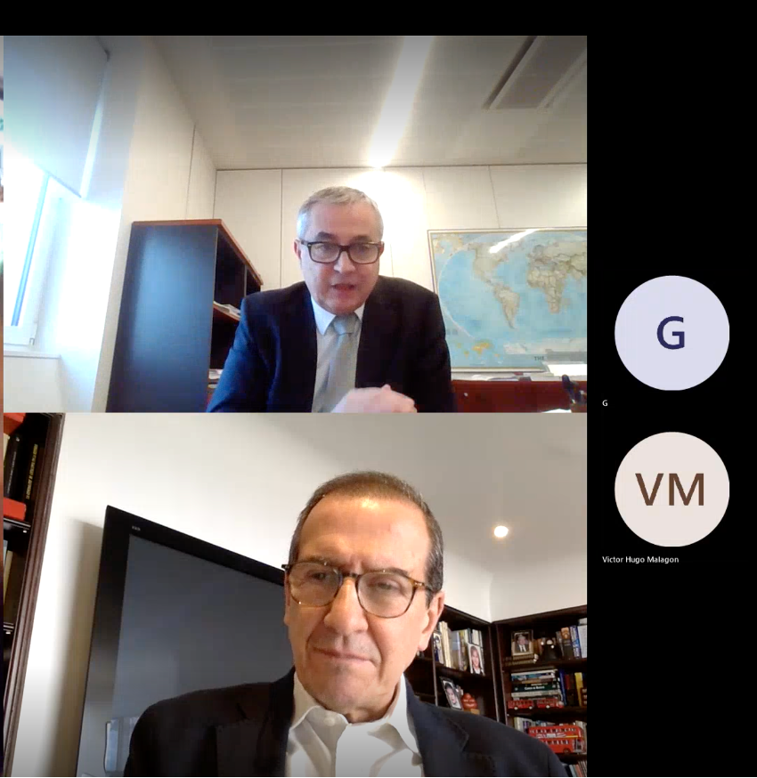 El Embajador Joaquín de Arístegui, agradeció al Presidente y al equipo de la Fundación por el trabajo realizado. Destacó las gestiones del equipo de la Fundación en Madrid y mencionó temas y actividades de la relación bilateral que se están realizando y continuarán en las próximas semanas. Asimismo, enfatizó en su disposición de seguir apoyando las actividades y proyectos de la Fundación.