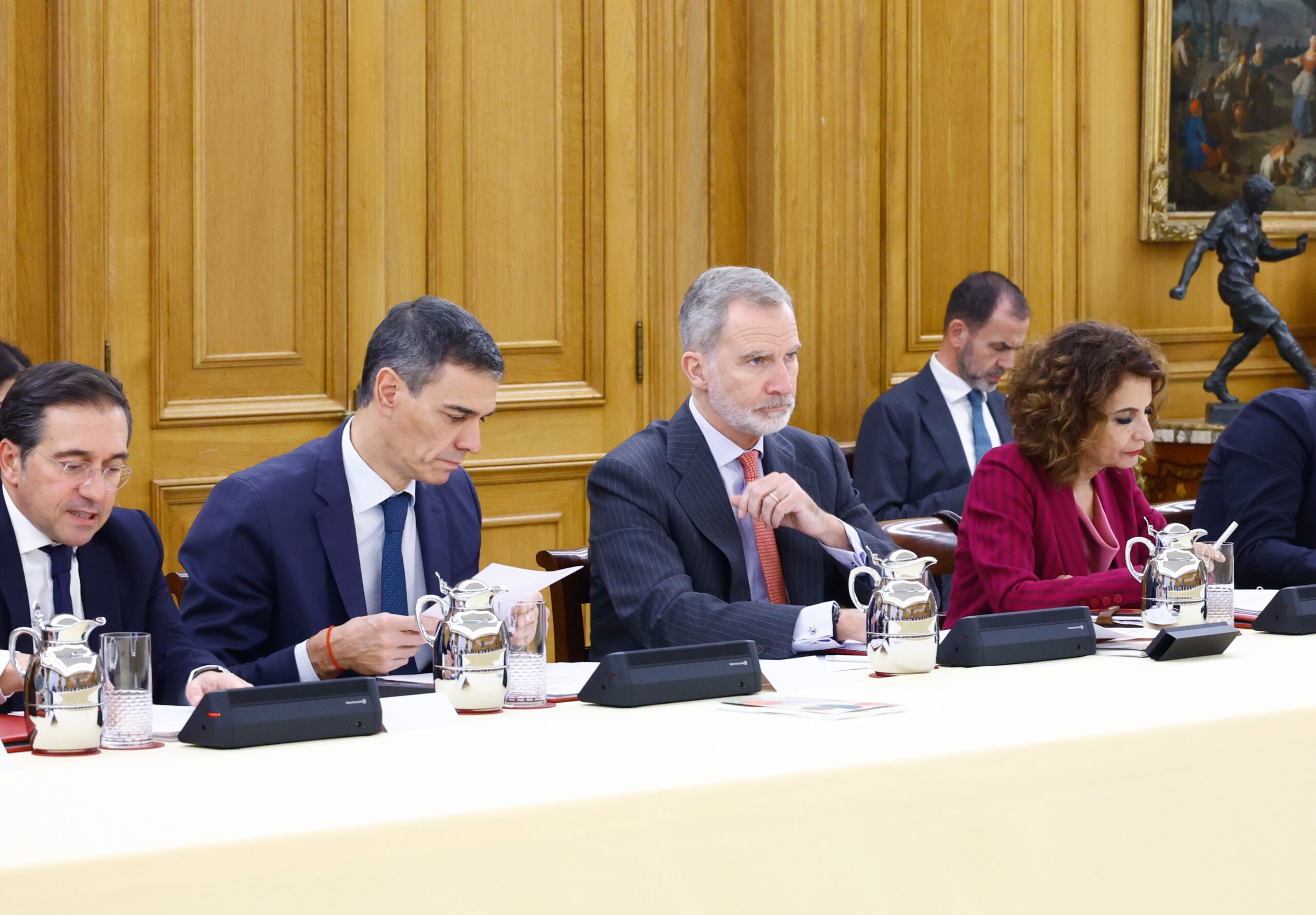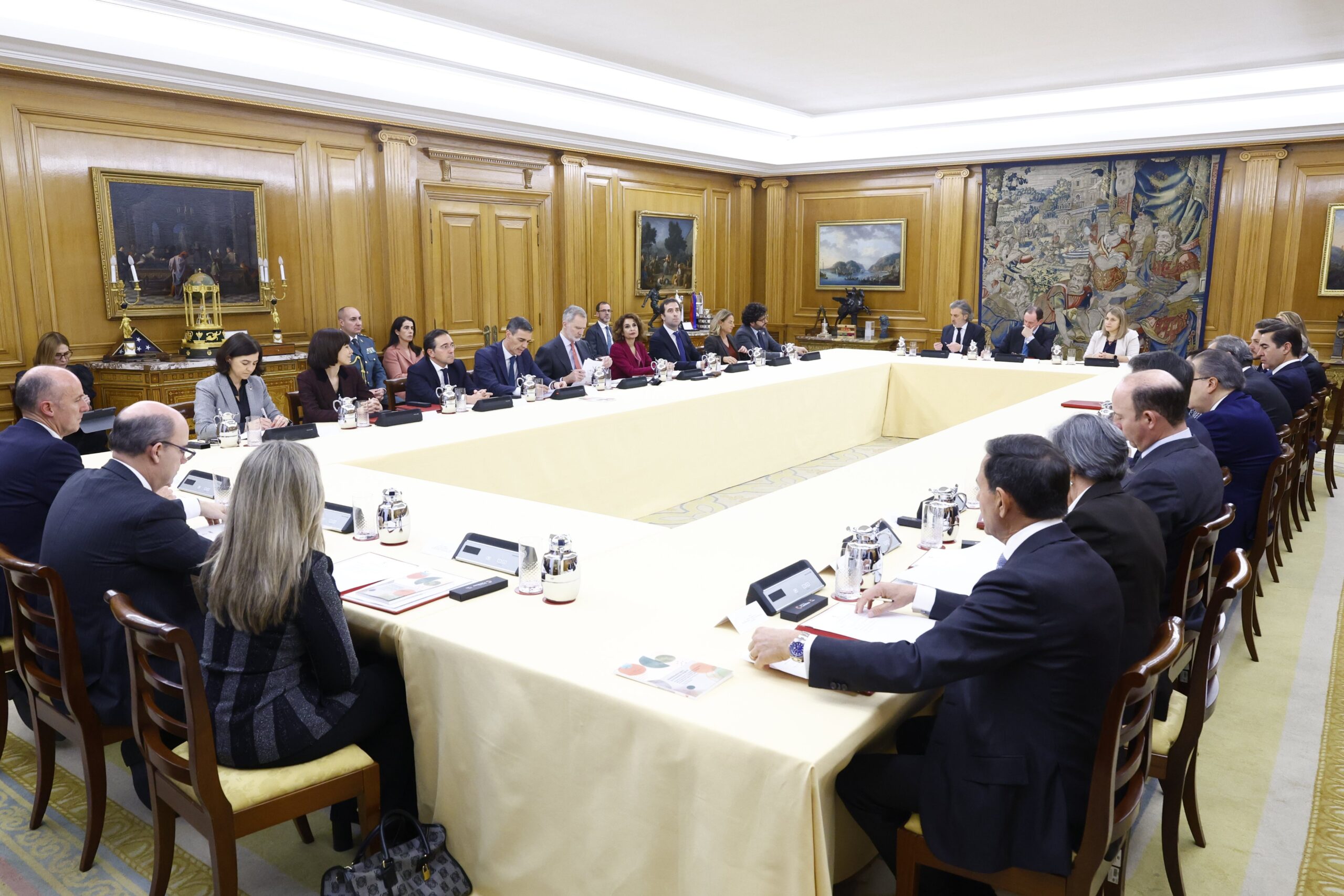 La sesión reunió a los miembros del Patronato de la Fundación Carolina, presidido por S.M. el Rey, con la participación del presidente del Gobierno y presidente ejecutivo del Patronato, Pedro Sánchez; la vicepresidenta primera y ministra de Hacienda, María Jesús Montero; el ministro de Asuntos Exteriores, Unión Europea y Cooperación, José Manuel Albares; así como otros altos representantes del Gobierno de España y de las empresas patronas.